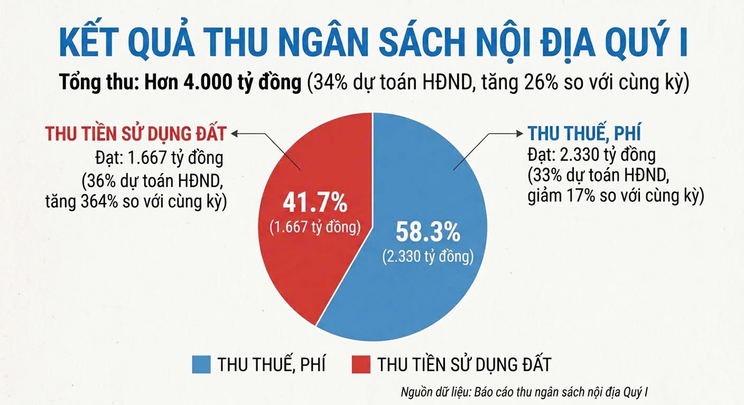 Quý I/2026, Hà Tĩnh thu ngân sách nội địa hơn 4.000 tỷ đồng, đạt 34% dự toán tỉnh giao, tăng 26% cùng kỳ. Kết quả này đến từ sự vào cuộc quyết liệt của ngành thuế và các địa phương.