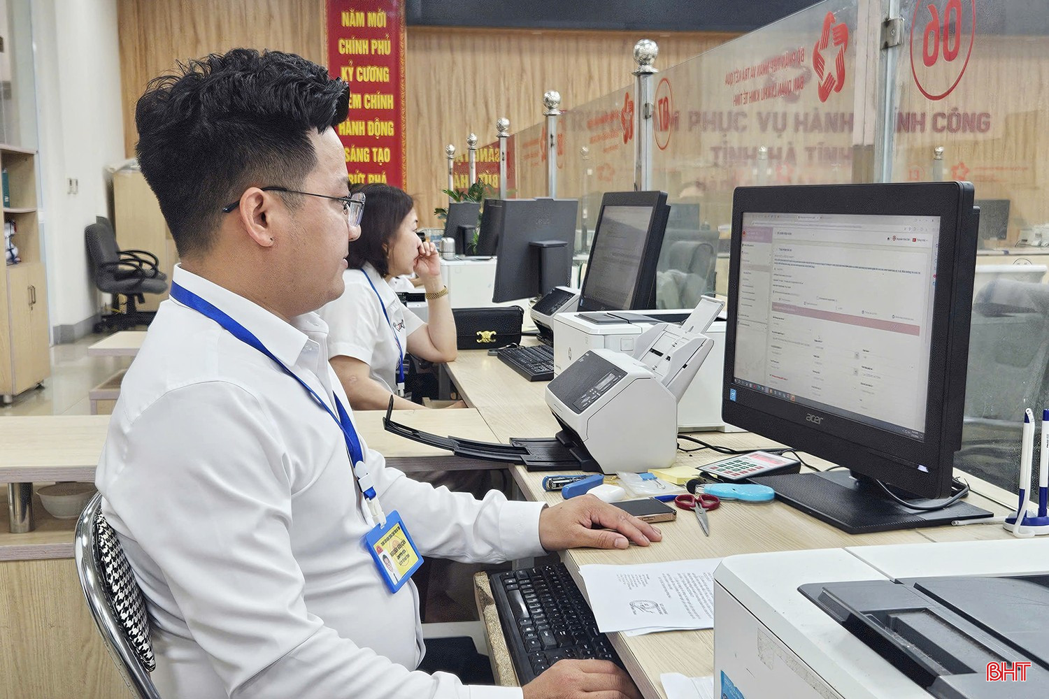 Các địa phương đẩy mạnh giải quyết thủ tục hành chính, tạo thuận lợi cho người dân cấp giấy chứng nhận quyền sử dụng đất đã góp phần tăng thu ngân sách. (Ảnh tại Trung tâm Phục vụ hành chính công tỉnh Hà Tĩnh).