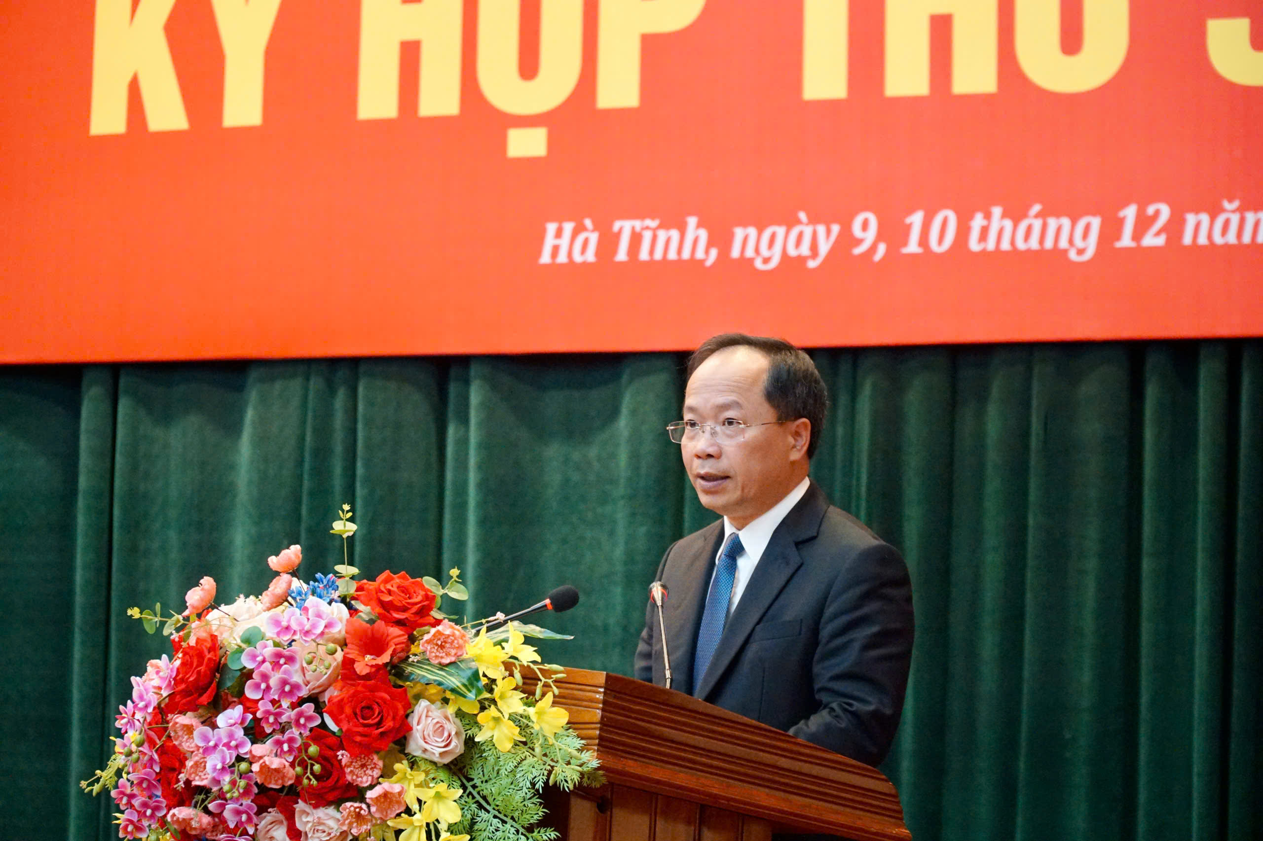 Phát biểu tại kỳ họp, Bí thư Tỉnh ủy Nguyễn Duy Lâm ghi nhận và đánh giá cao nỗ lực phấn đấu của các cấp ủy Đảng, HĐND, UBND, các cấp, các ngành, góp phần vào kết quả phát triển kinh tế - xã hội của tỉnh năm 2025.