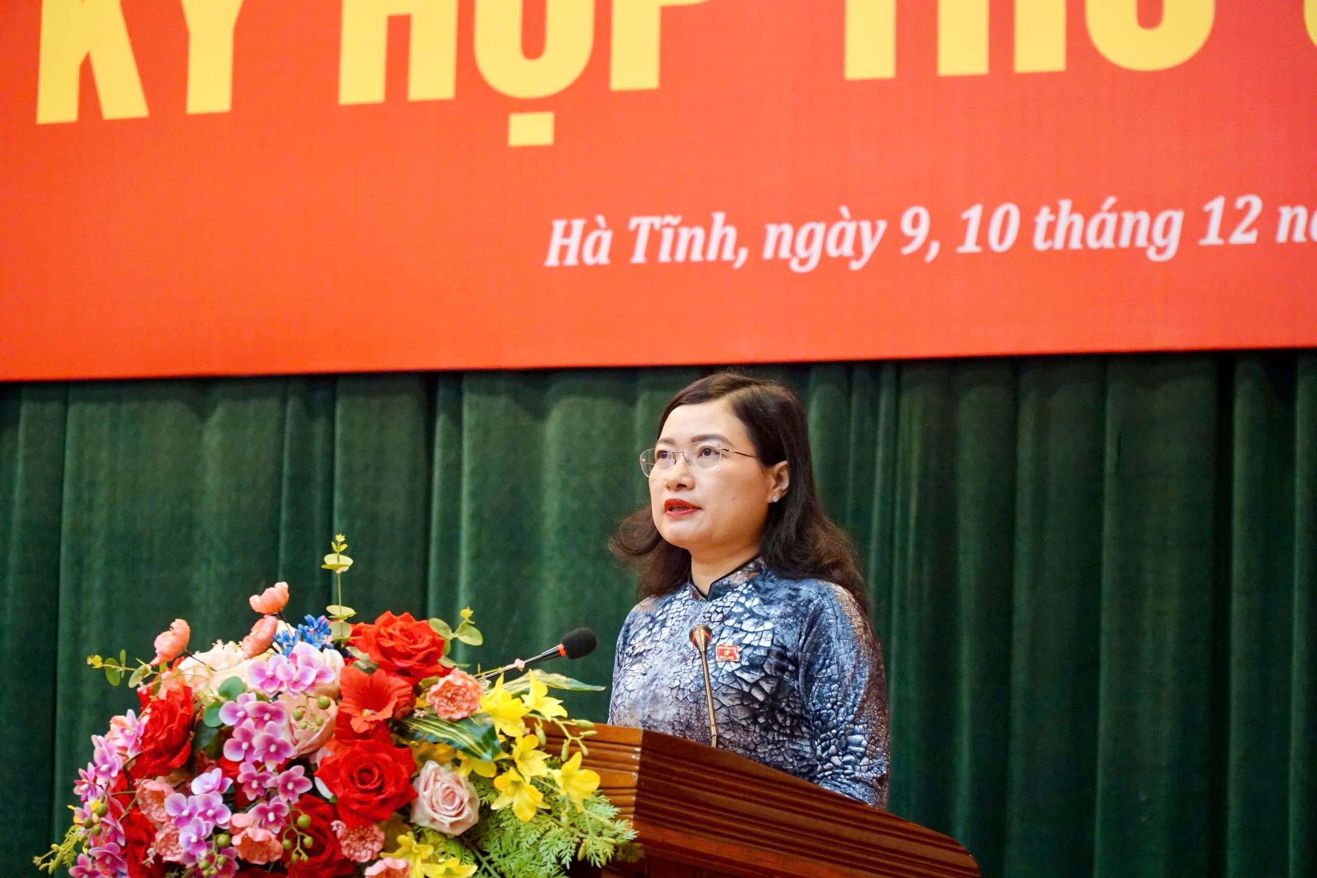Phó Chủ tịch UBND tỉnh Nguyễn Thị Nguyệt báo cáo tại kỳ họp