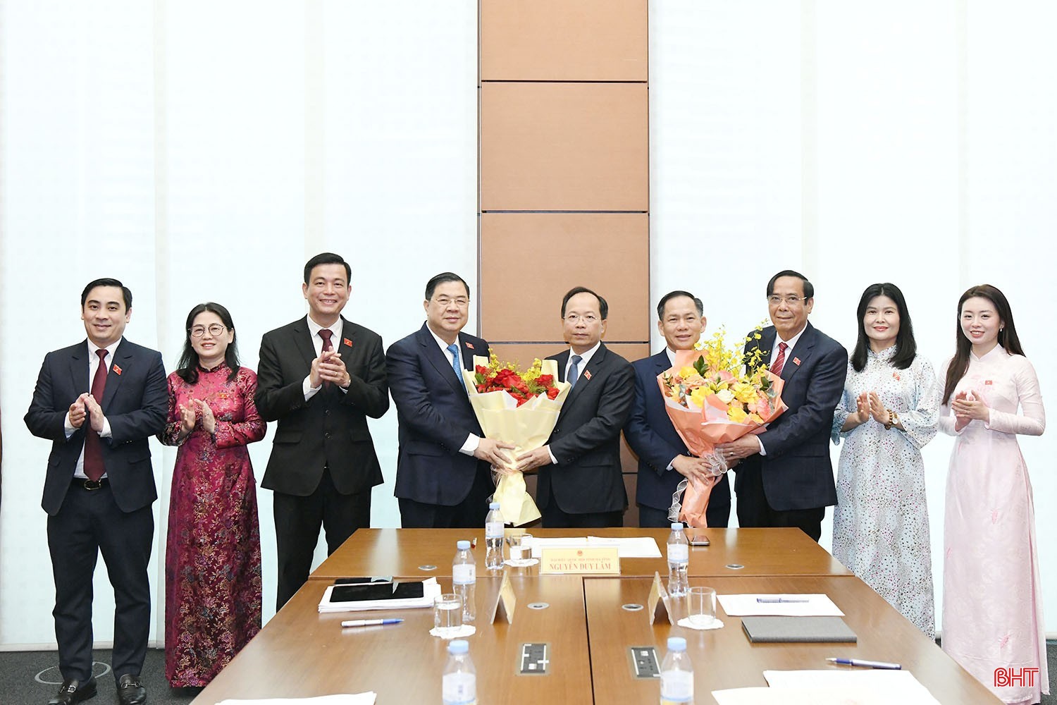 Đoàn ĐBQH tỉnh Hà Tĩnh tặng hoa chúc mừng đồng chí Nguyễn Duy Lâm - Ủy viên Ban Chấp hành Trung ương Đảng, Bí thư Tỉnh ủy giữ chức Trưởng đoàn ĐBQH và đồng chí Trần Đình Gia - Ủy viên Ban Chấp hành Đảng bộ tỉnh giữ chức Phó Trưởng đoàn chuyên trách Đoàn ĐBQH tỉnh Hà Tĩnh khóa XVI.