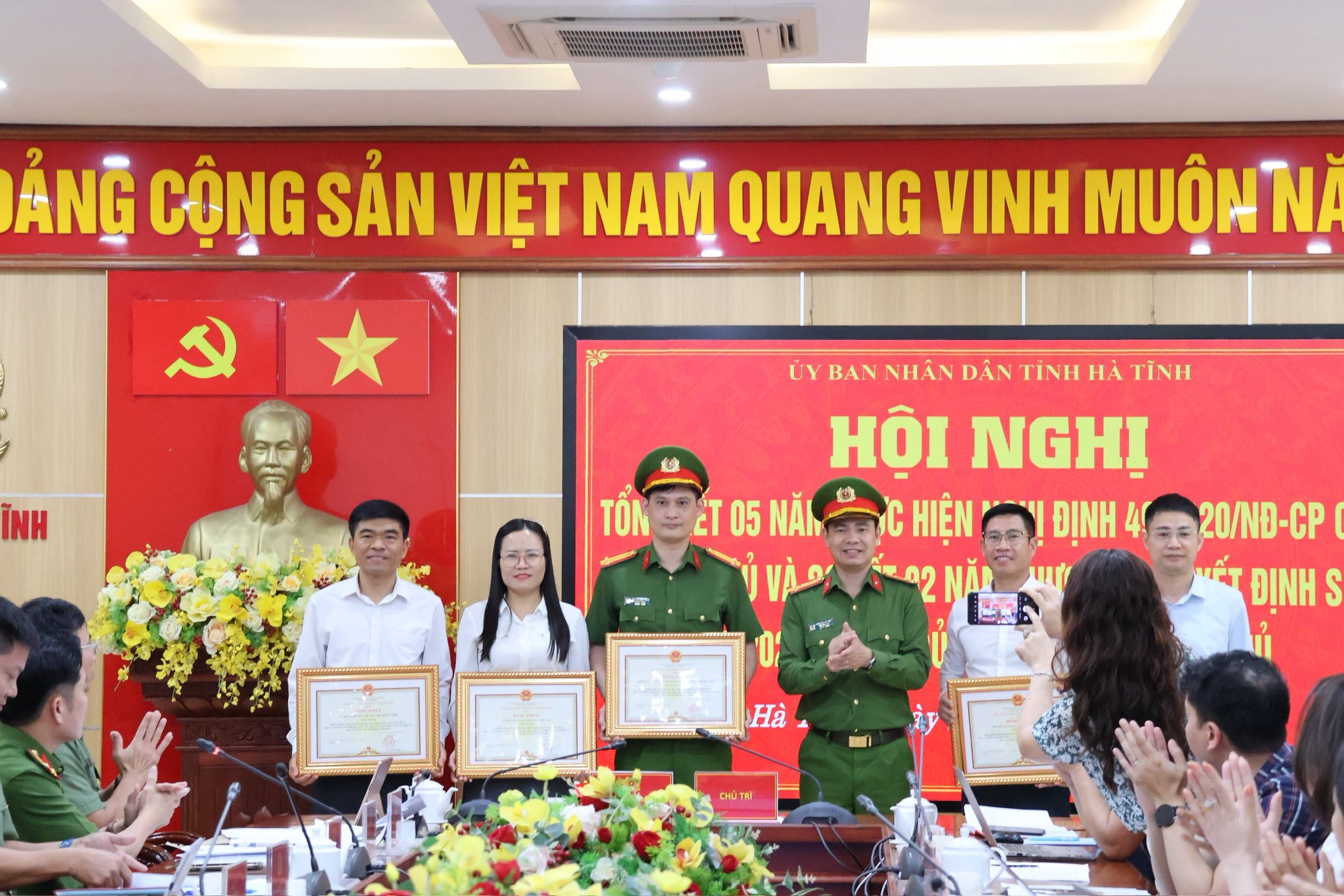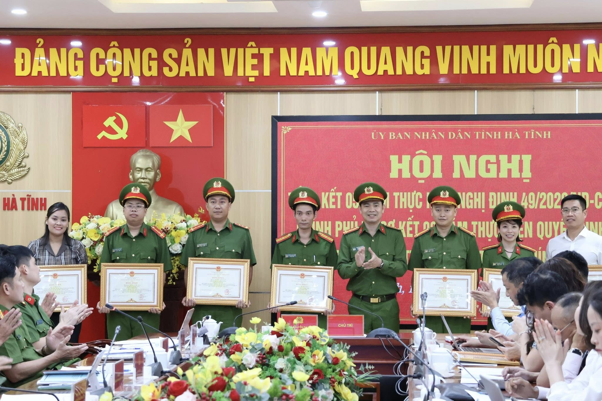 Tại hội nghị, thay mặt lãnh đạo tỉnh, lãnh đạo Công an tỉnh Hà Tĩnh đã trao tặng bằng khen của Chủ tịch UBND tỉnh cho 5 tập thể, 9 cá nhân vì đã có thành tích xuất sắc trong thực hiện Nghị định số 49 và Quyết định số 22.